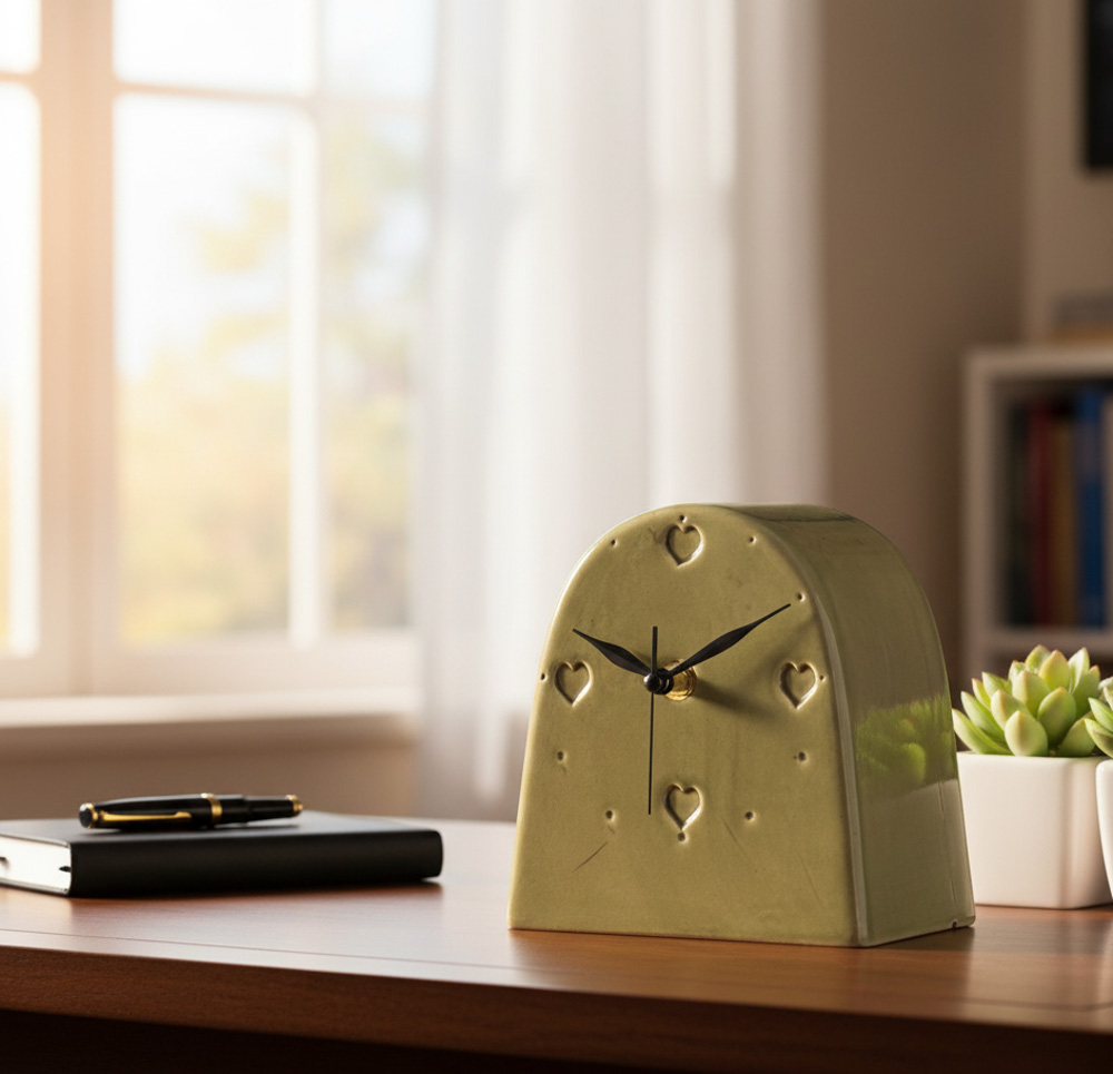 Açık Yeşil Oval Masa Saati MS041 mekanlarınıza zarif bir dokunuş katmak için tasarlandı. Hem ofis hem de ev kullanımı için mükemmel bir seçim olan bu masa saati, şıklığıyla dikkat çekiyor.