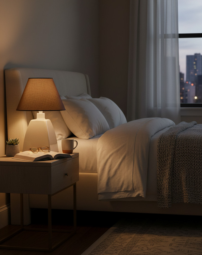 🔸Konik formdaki abajur başlığı, ışığı dengeli biçimde yayarak ortama yumuşak bir aydınlatma sağlar.
