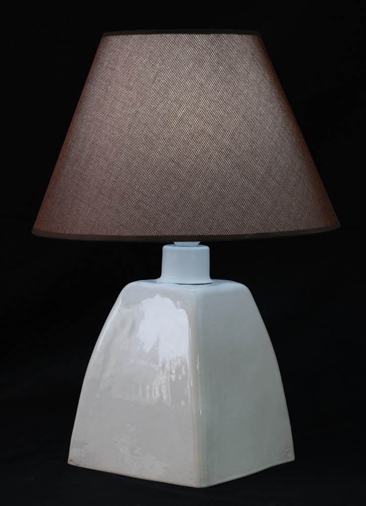Malzeme: Seramik gövde, kumaş abajur şapkası