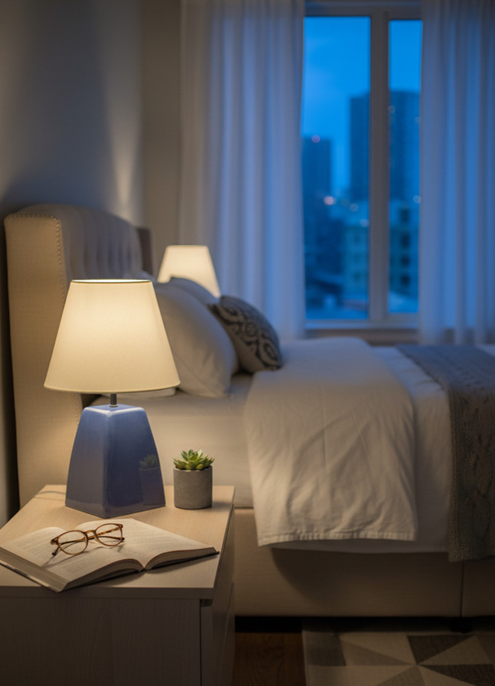 Beyaz ve krem tonlarının uyumuyla tasarlananDekoratif Kare Prizma Mavi Abajur AB054 , hem klasik hem modern dekorasyonlara uyum sağlayarak yaşam alanınıza estetik bir dokunuş kazandırır.
