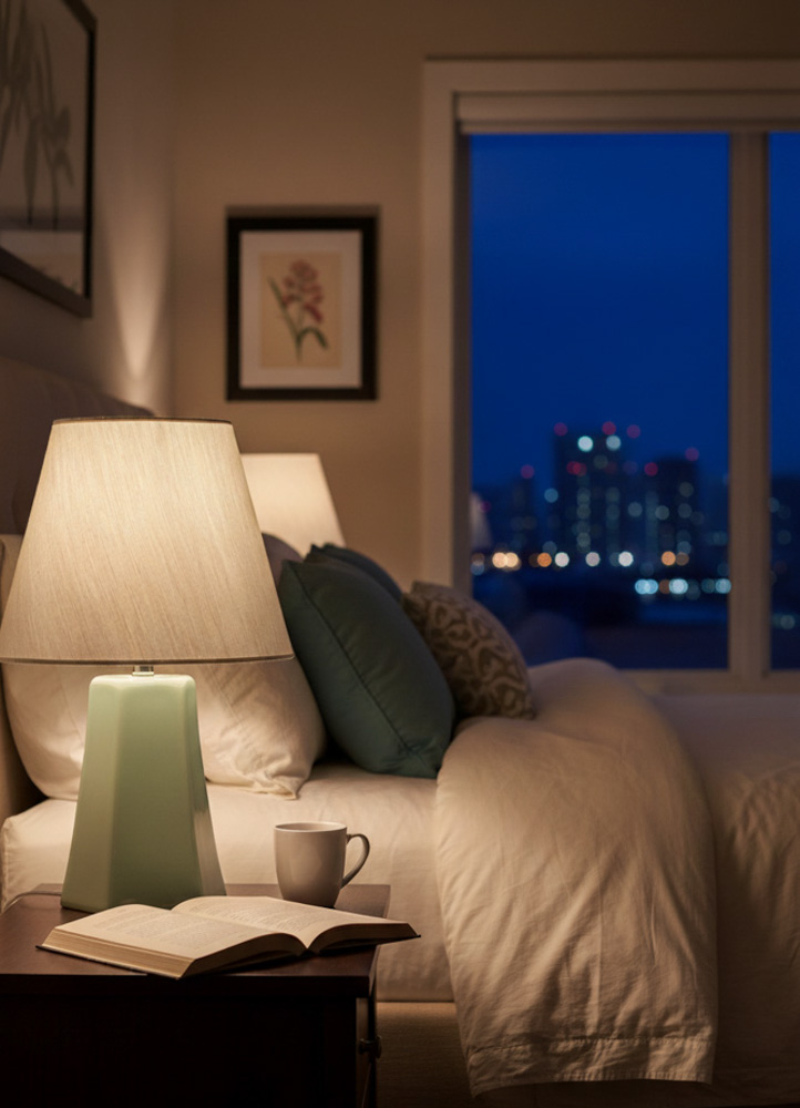 🔸 Kare formdaki abajur başlığı, ışığı dengeli biçimde yayarak ortama yumuşak bir aydınlatma sağlar.