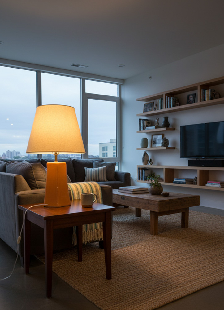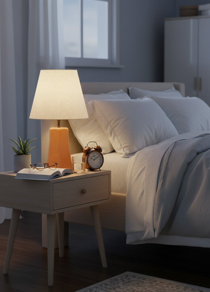 🔸Konik formdaki abajur başlığı, ışığı dengeli biçimde yayarak ortama yumuşak bir aydınlatma sağlar.