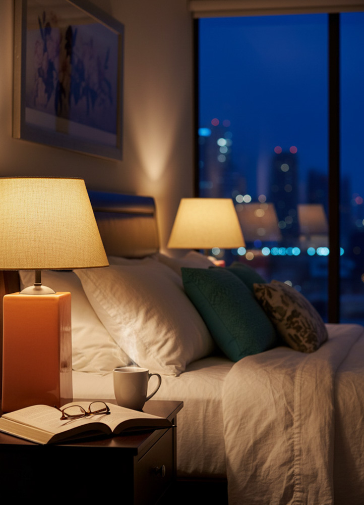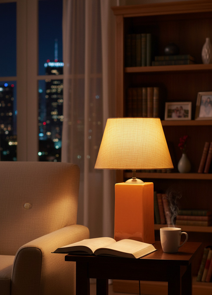 🔸 Kare formdaki abajur başlığı, ışığı dengeli biçimde yayarak ortama yumuşak bir aydınlatma sağlar.