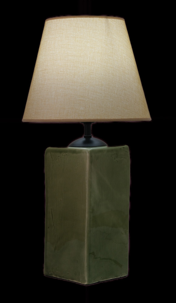 Dekoratif Seramik Kare Abajur Yeşil Krem AB058
