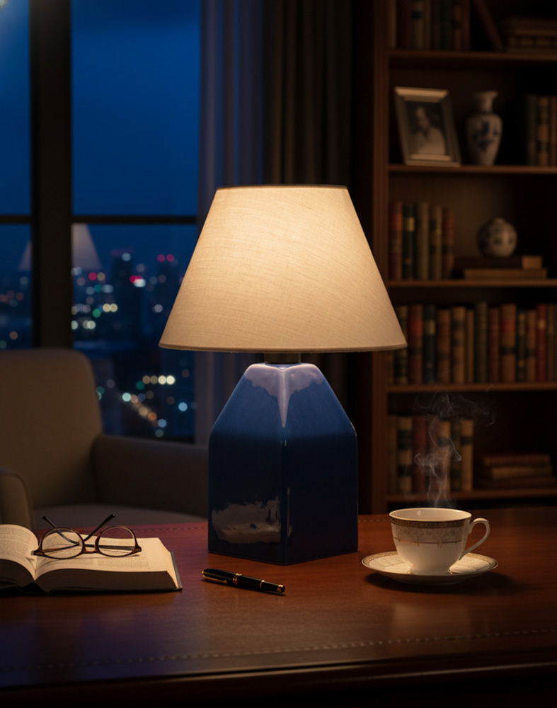 Dekoratif Seramik Konik Lacivert Abajur AB014