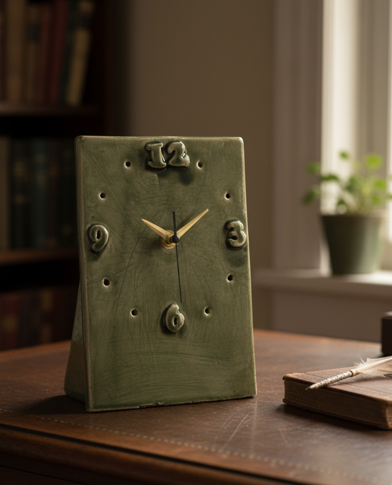 Haki Yeşil Masa Saati MS008, modern tasarımı ve fonksiyonelliği ile yaşam alanlarınıza zarif bir dokunuş katmak için tasarlandı. Hem ofis hem de ev kullanımı için mükemmel bir seçim olan bu masa saati, şıklığıyla dikkat çekiyor.