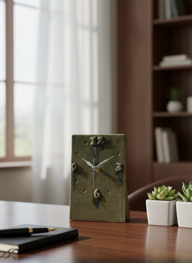 Haki Yeşil Masa Saati MS049, modern tasarımı ve fonksiyonelliği ile yaşam alanlarınıza zarif bir dokunuş katmak için tasarlandı. Hem ofis hem de ev kullanımı için mükemmel bir seçim olan bu masa saati, şıklığıyla dikkat çekiyor.