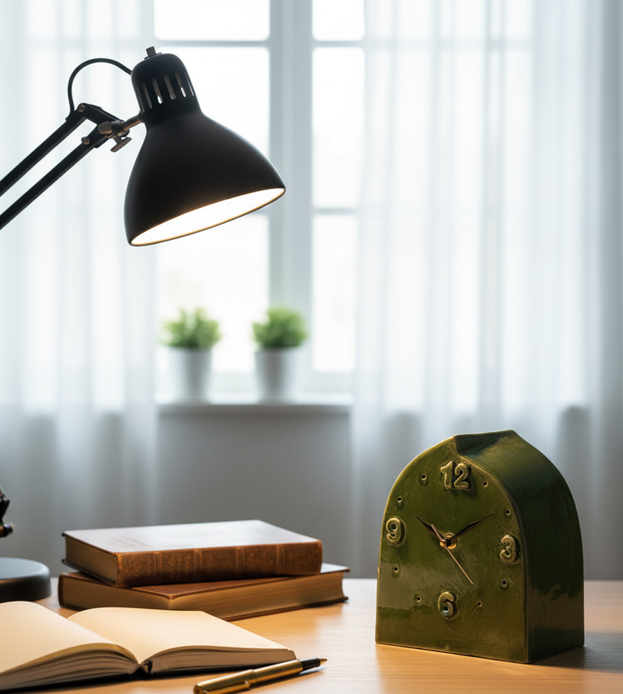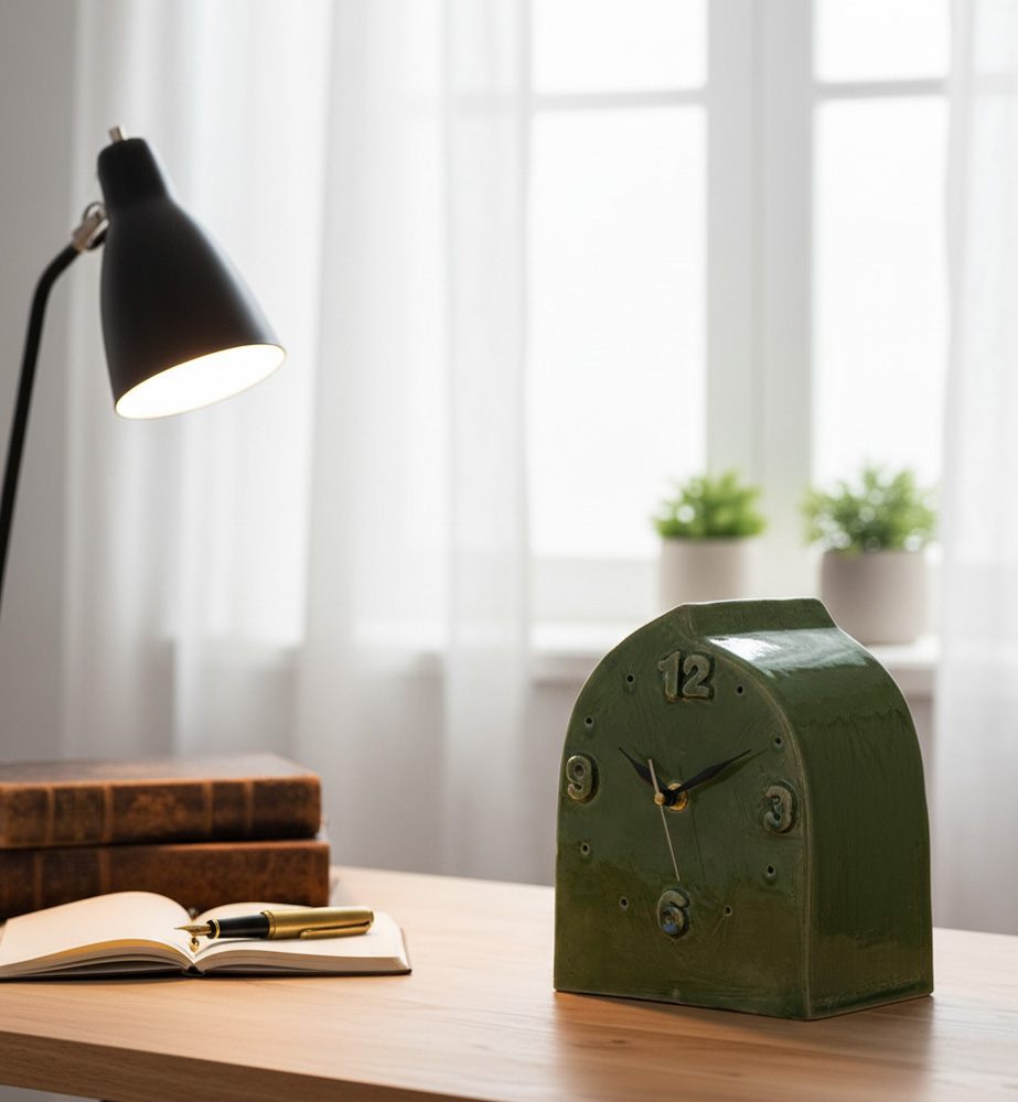 Koyu Yeşil Büyük Masa Saati MS004, modern tasarımı ve fonksiyonelliği ile yaşam alanlarınıza zarif bir dokunuş katmak için tasarlandı. Hem ofis hem de ev kullanımı için mükemmel bir seçim olan bu masa saati, şıklığıyla dikkat çekiyor.