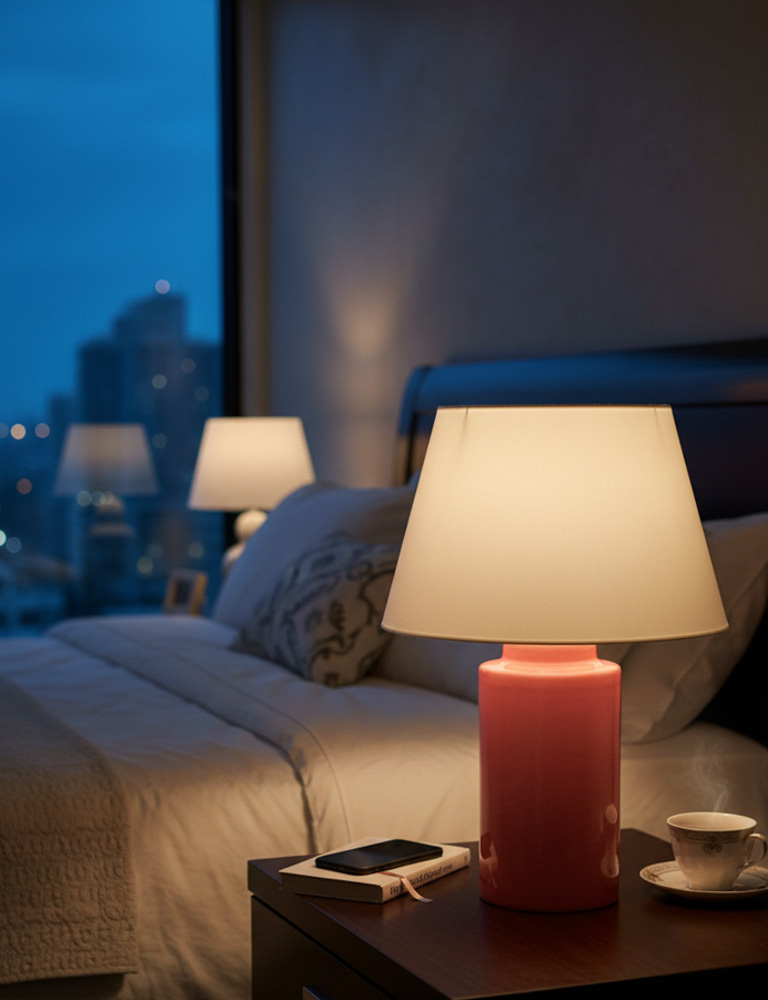 🔸 Konik formdaki abajur başlığı, ışığı dengeli biçimde yayarak ortama yumuşak bir aydınlatma sağlar.