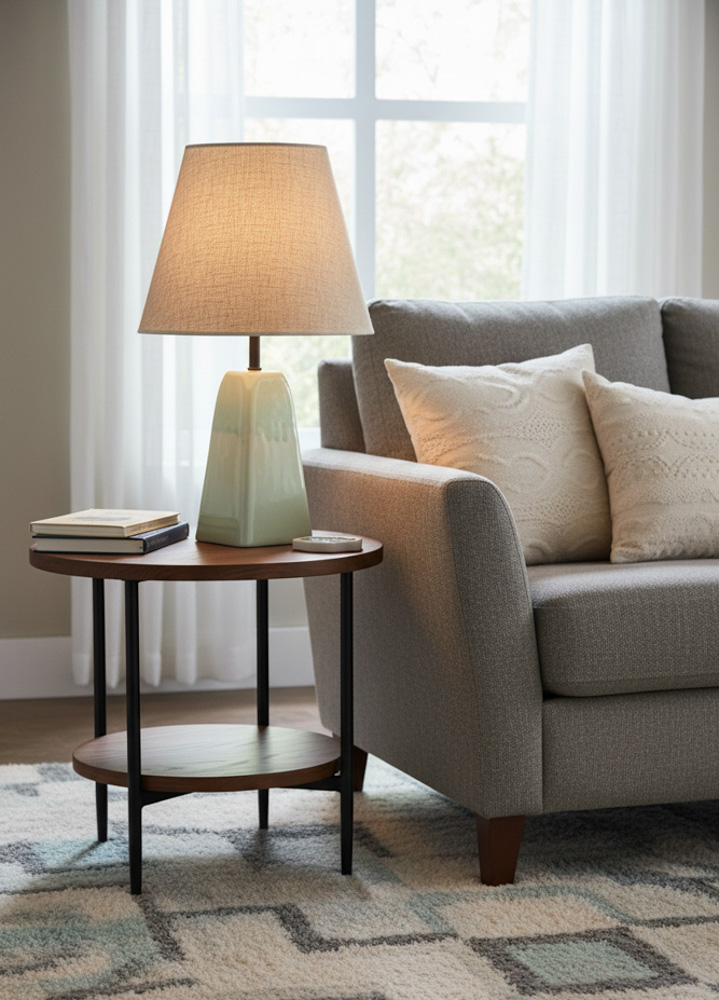 🔸Konik formdaki abajur başlığı, ışığı dengeli biçimde yayarak ortama yumuşak bir aydınlatma sağlar.