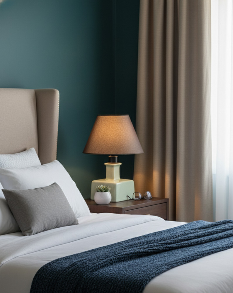 🔸 Konik formdaki abajur başlığı, ışığı dengeli biçimde yayarak ortama yumuşak bir aydınlatma sağlar.