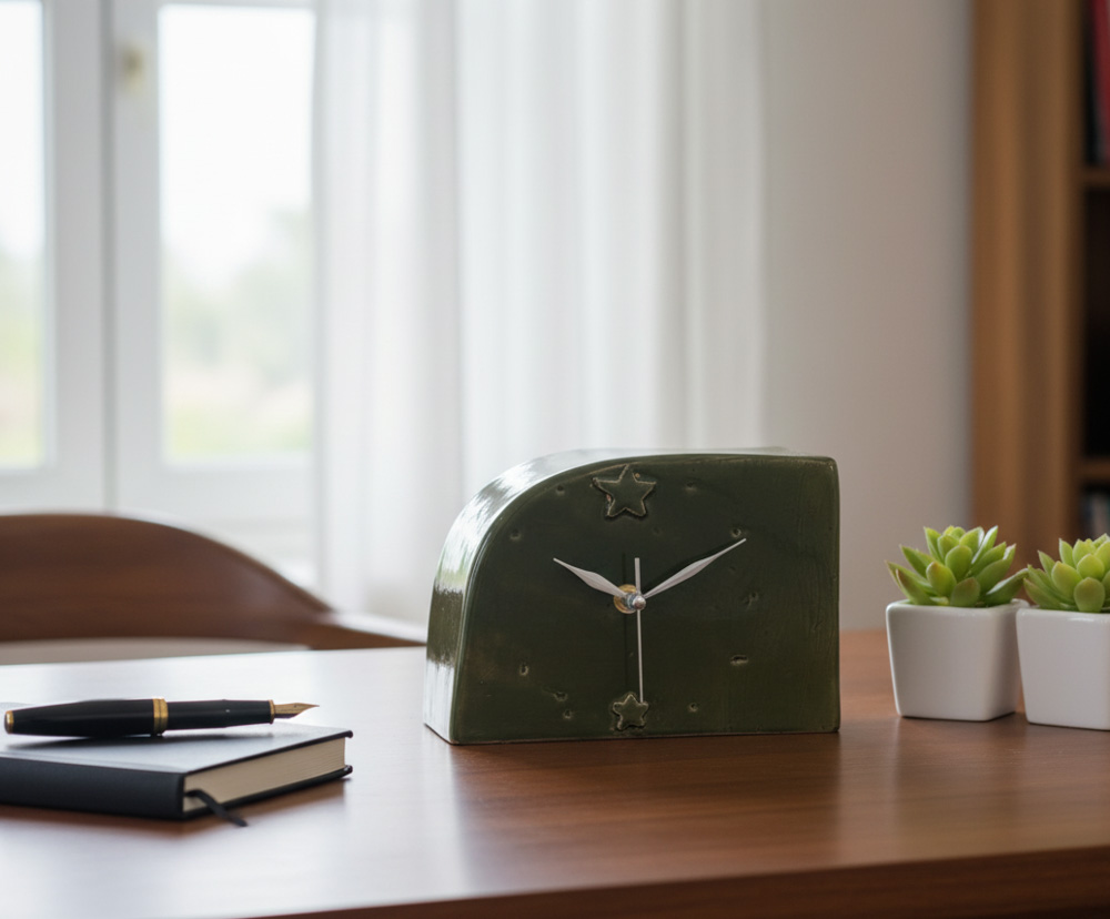 Yeşil oval Masa Saati MS047, modern tasarımı ve fonksiyonelliği ile yaşam alanlarınıza zarif bir dokunuş katmak için tasarlandı. Hem ofis hem de ev kullanımı için mükemmel bir seçim olan bu masa saati, şıklığıyla dikkat çekiyor.