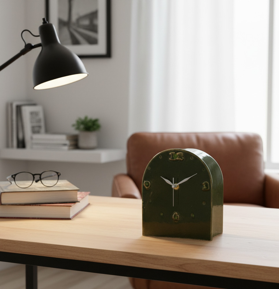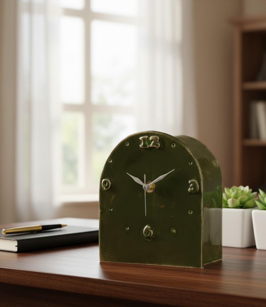 Yeşil Renkli Oval Masa Saati MS043 mekanlarınıza zarif bir dokunuş katmak için tasarlandı. Hem ofis hem de ev kullanımı için mükemmel bir seçim olan bu masa saati, şıklığıyla dikkat çekiyor.